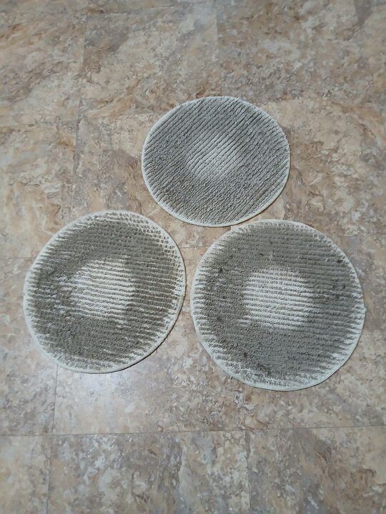 I used 14'' Red Pad on 14'' Driver to scrub and extracted with 17'' Ironman Bonnets. I used both sides of the bonnets