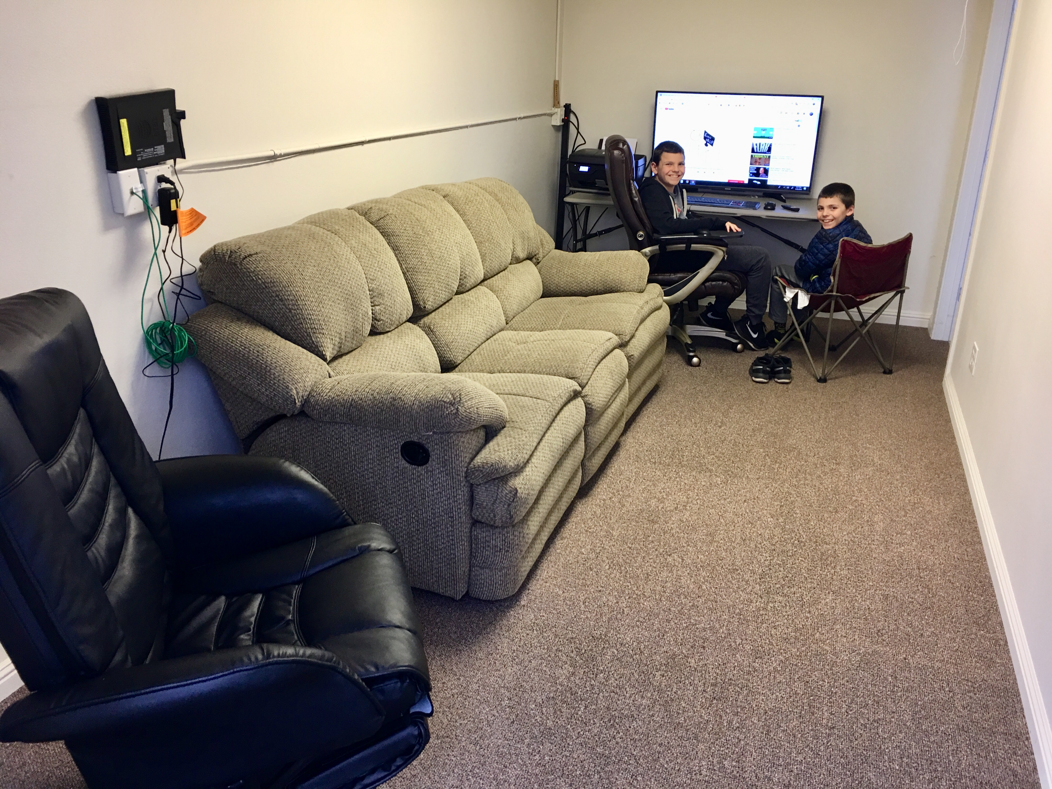 Whew I got it in. Had to take it apart. The office is coming together. I’ve got a 55” tv coming for the wall that’ll be mounted in front of the couch, making a black walnut live edge table for under the tv for my printer to sit on, and am making a Redwood live edge desk. The 43” computer monitor seen in the pic will also be mounted on the wall.