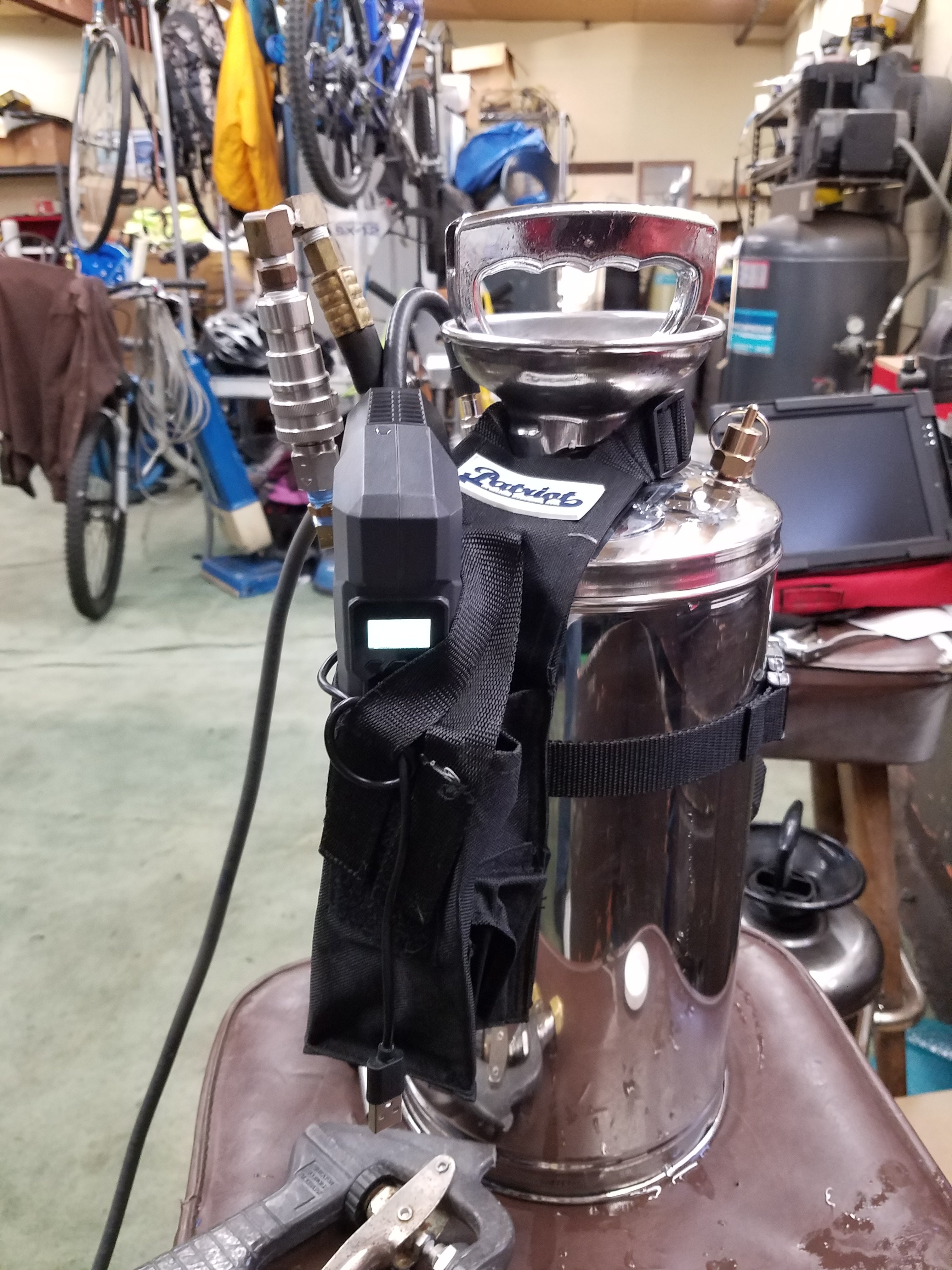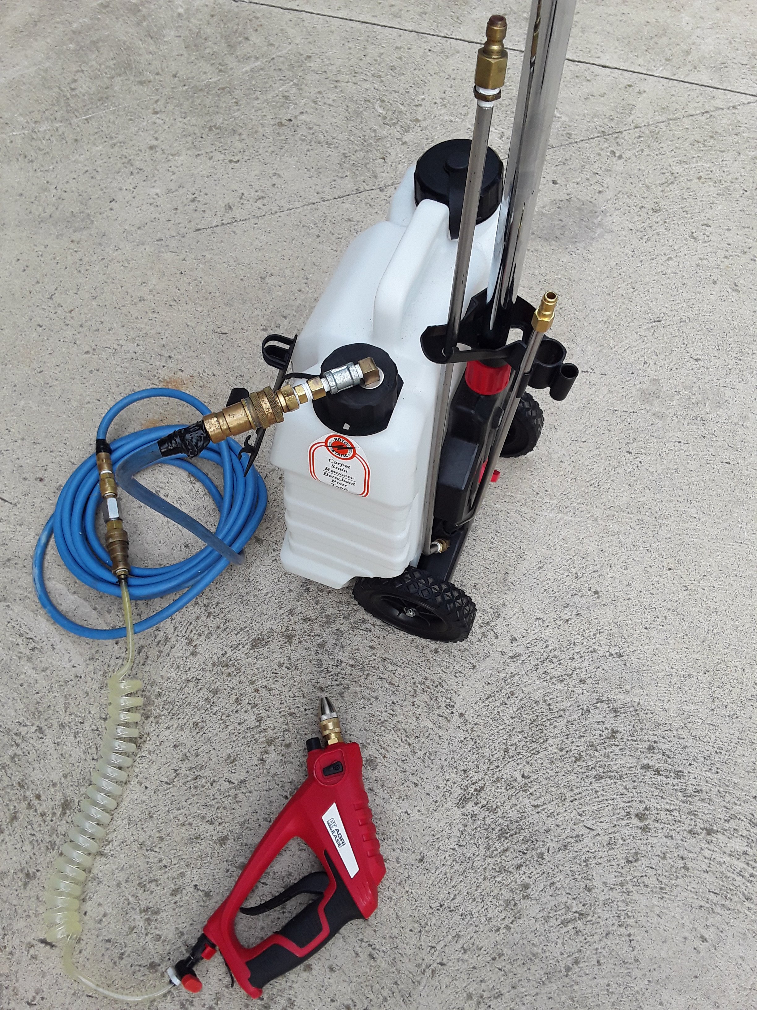 I m using a Longray 2gallon sprayer, kleanrite quick connect filter 10' hose battery powered compressor, and a patriot sprayer co2 bottle holder for compressorHeres what i use as my upholstery sprayer