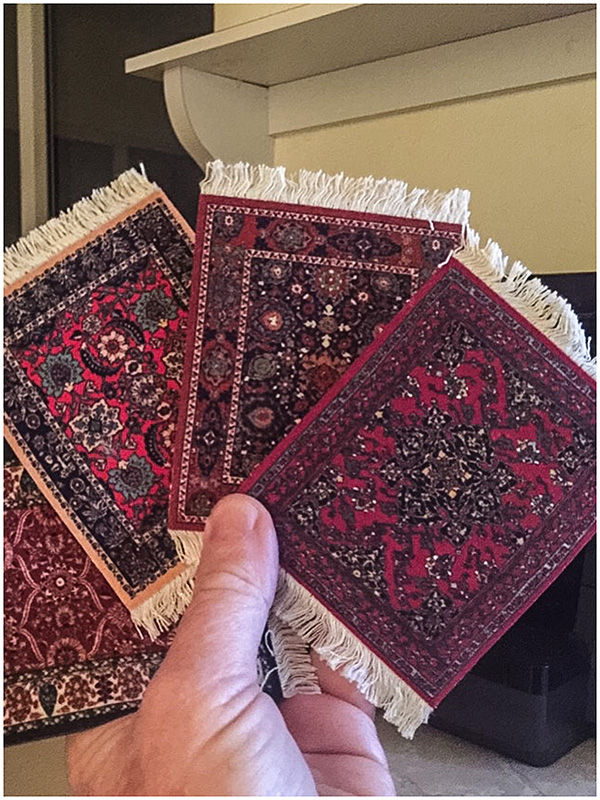 Nov 13, 2016 #7 T Monahan Supportive Member Cleaning Professional Joined Sep 9, 2012 Messages 1,675 Name Tom Monahan Funny man. Those are rubber. They do sell hand-knotted or woven drink coasters though.