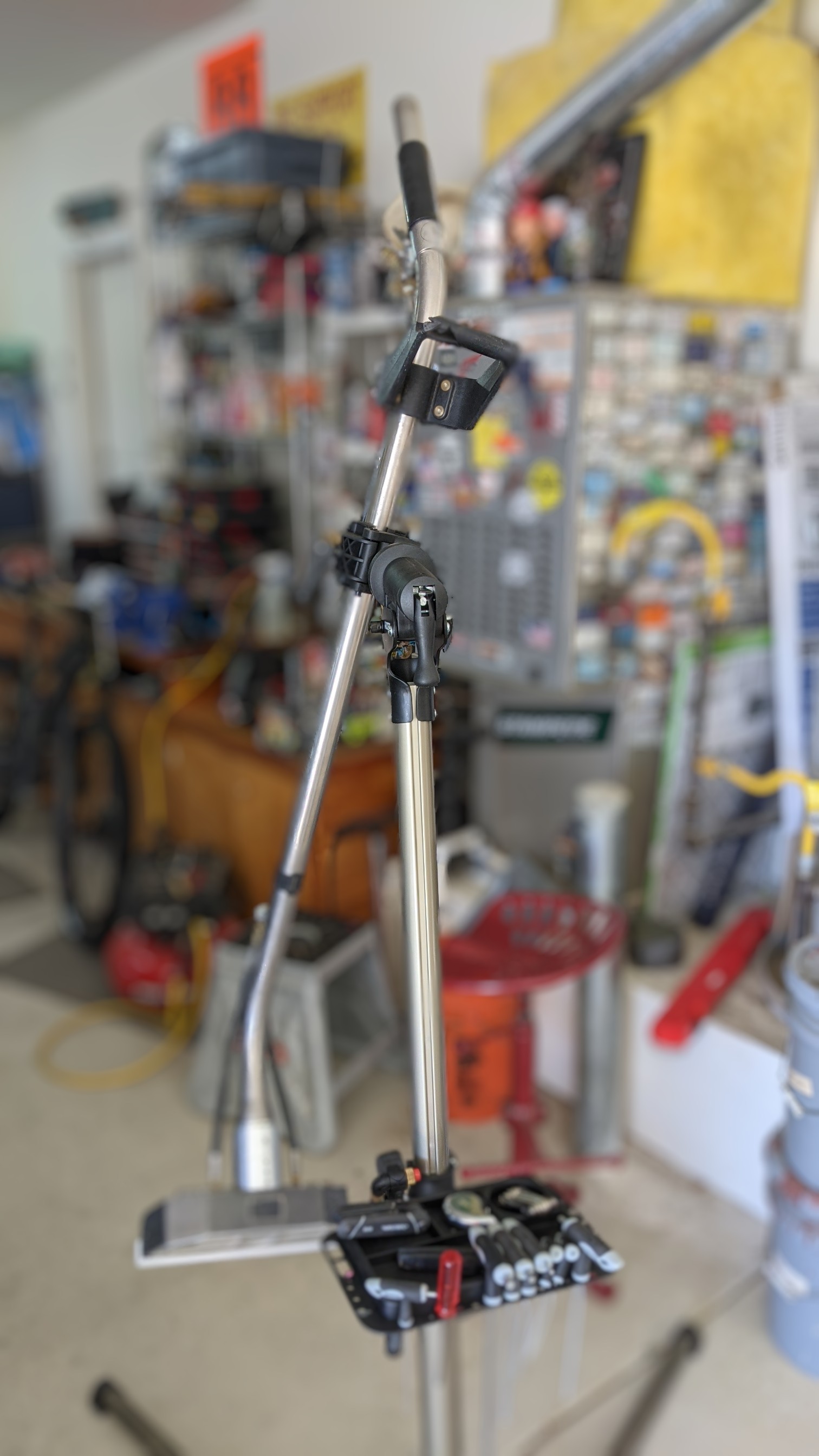 I had the same handle on my Oreck for doing steps. Put a foam spacer and tightened it down . Worked for a year until the Mighty handle broke in three places. Switched to the Amazon $10.00 just this week and it works like a charm. Makes scrubbing steps a breeze with the Oreck .