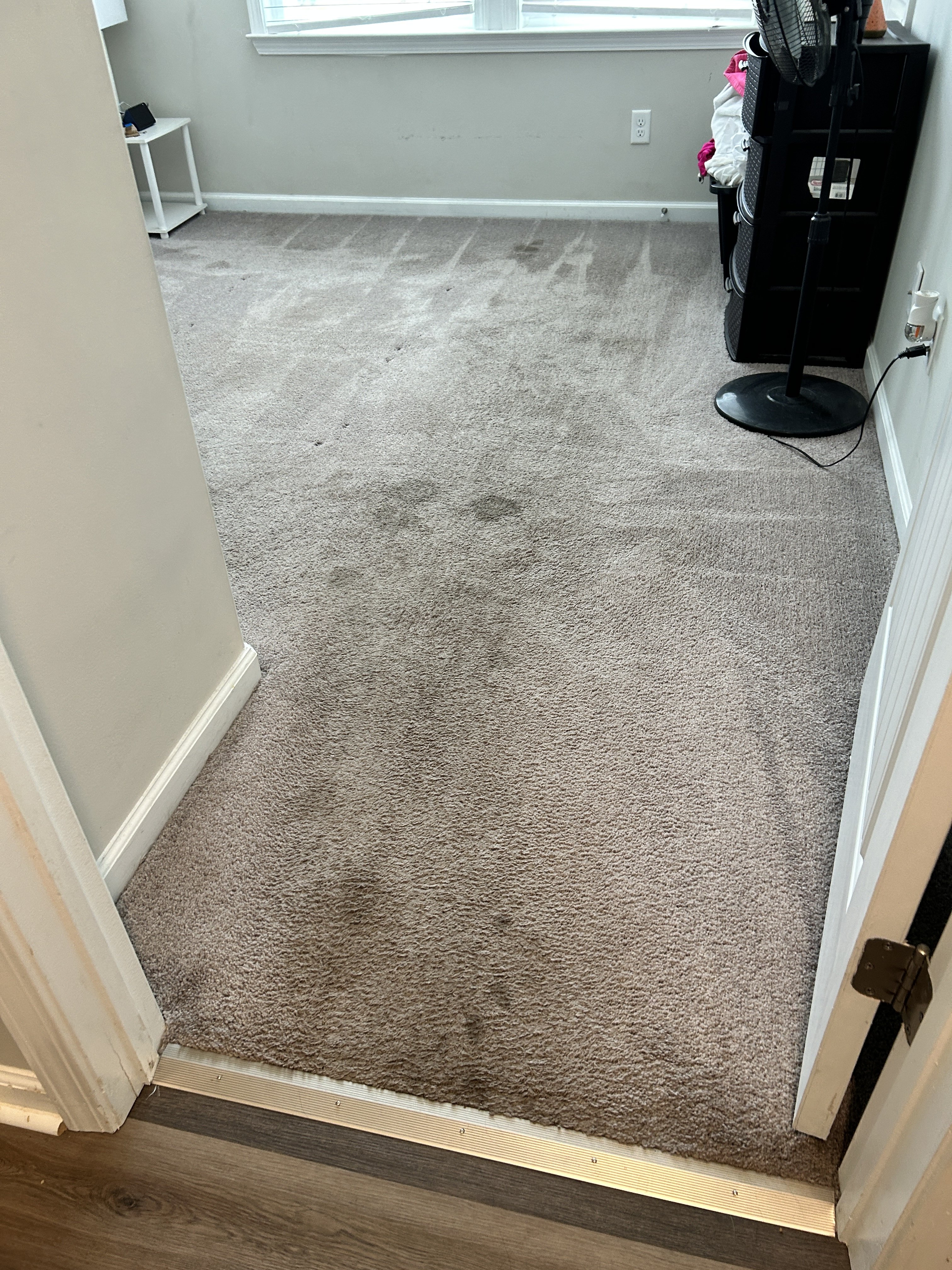 Today I had a repeat client that has an old dog. I usually clean for them at least 2 times a year. They have poly carpet, beige in color. I always give them one of my pet spotters, but they ran out in-between cleanings and opted for some hardware store pet spotter and you can definitely tell where it was used because it was resoiling like crazy.