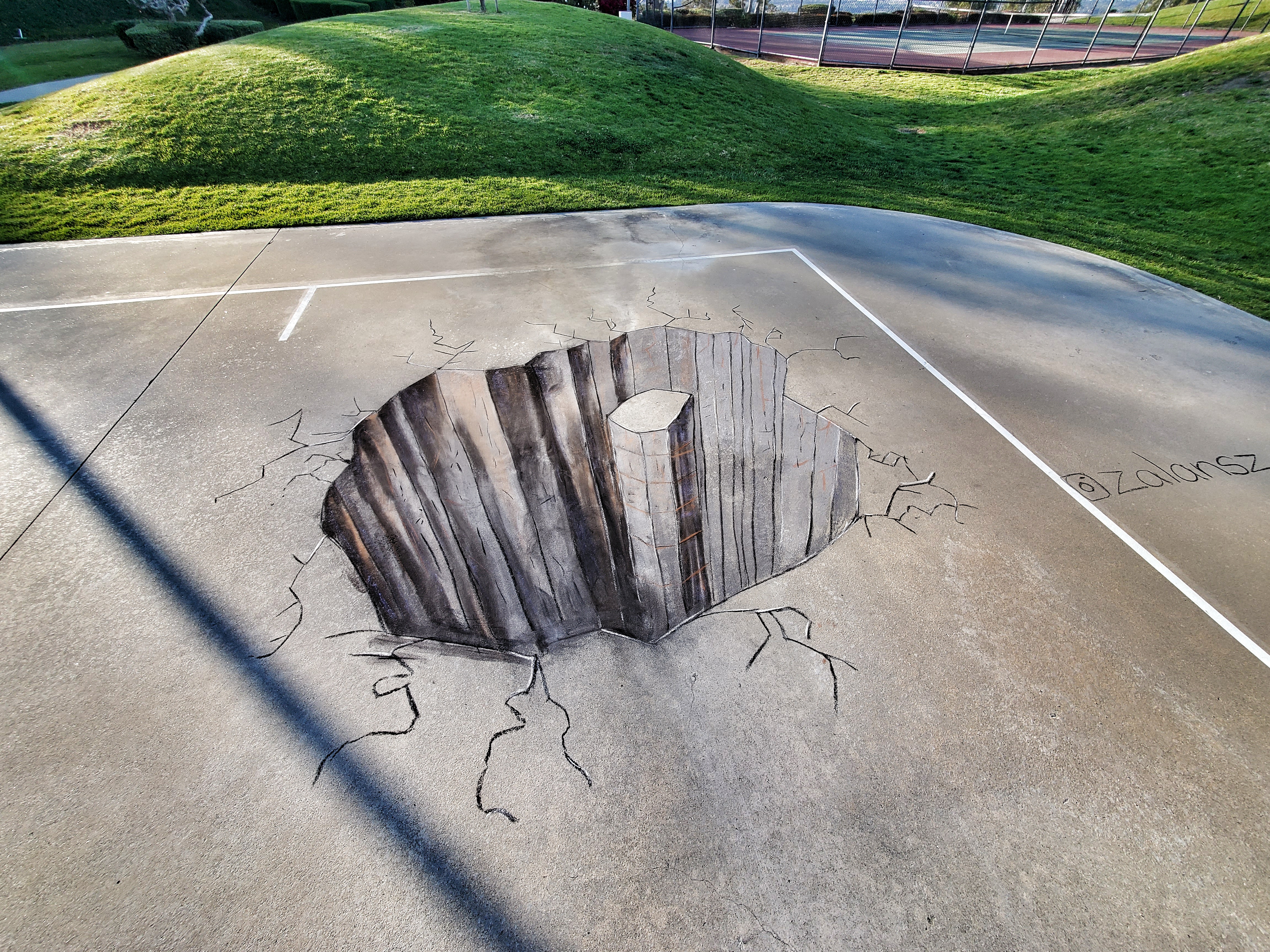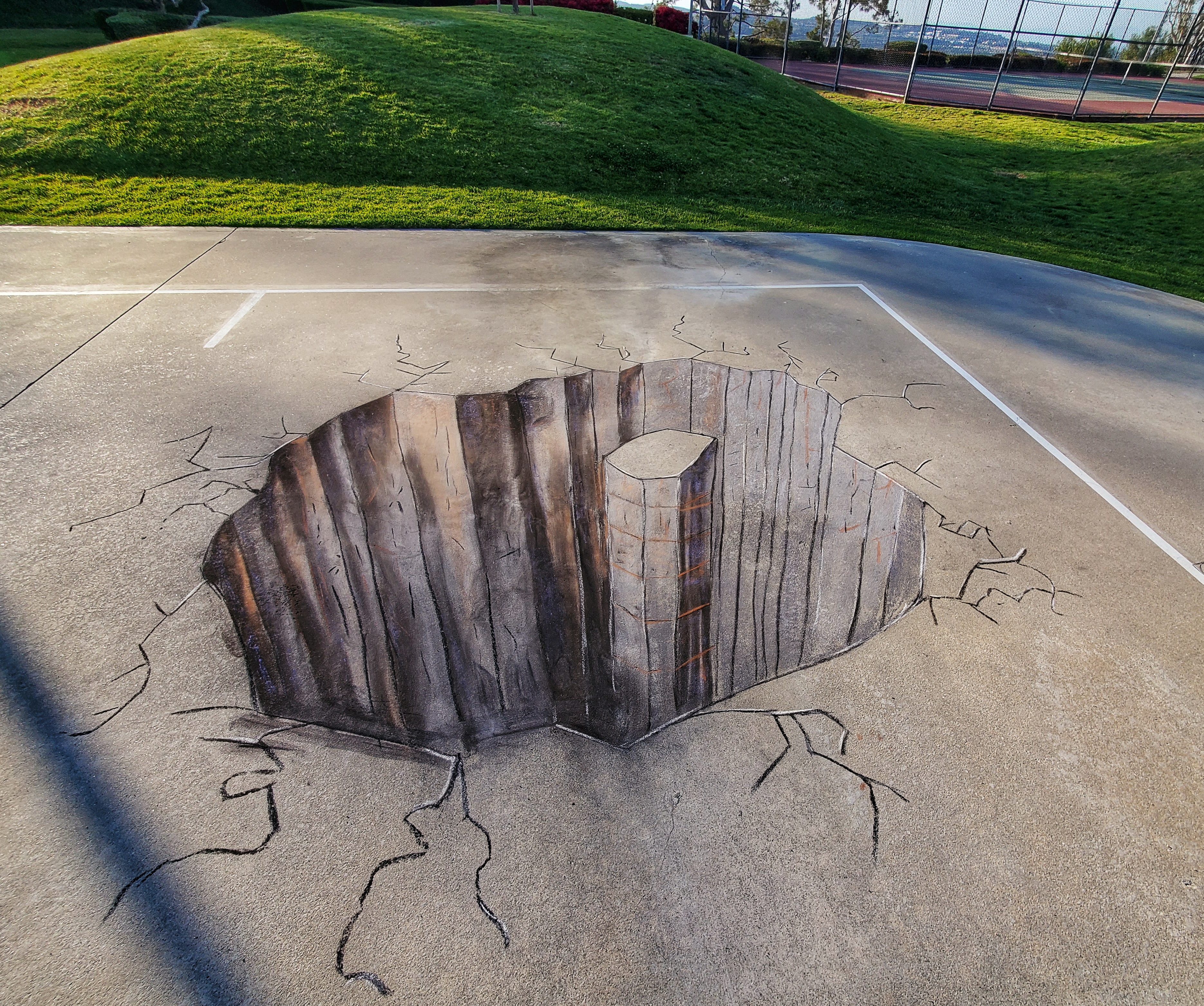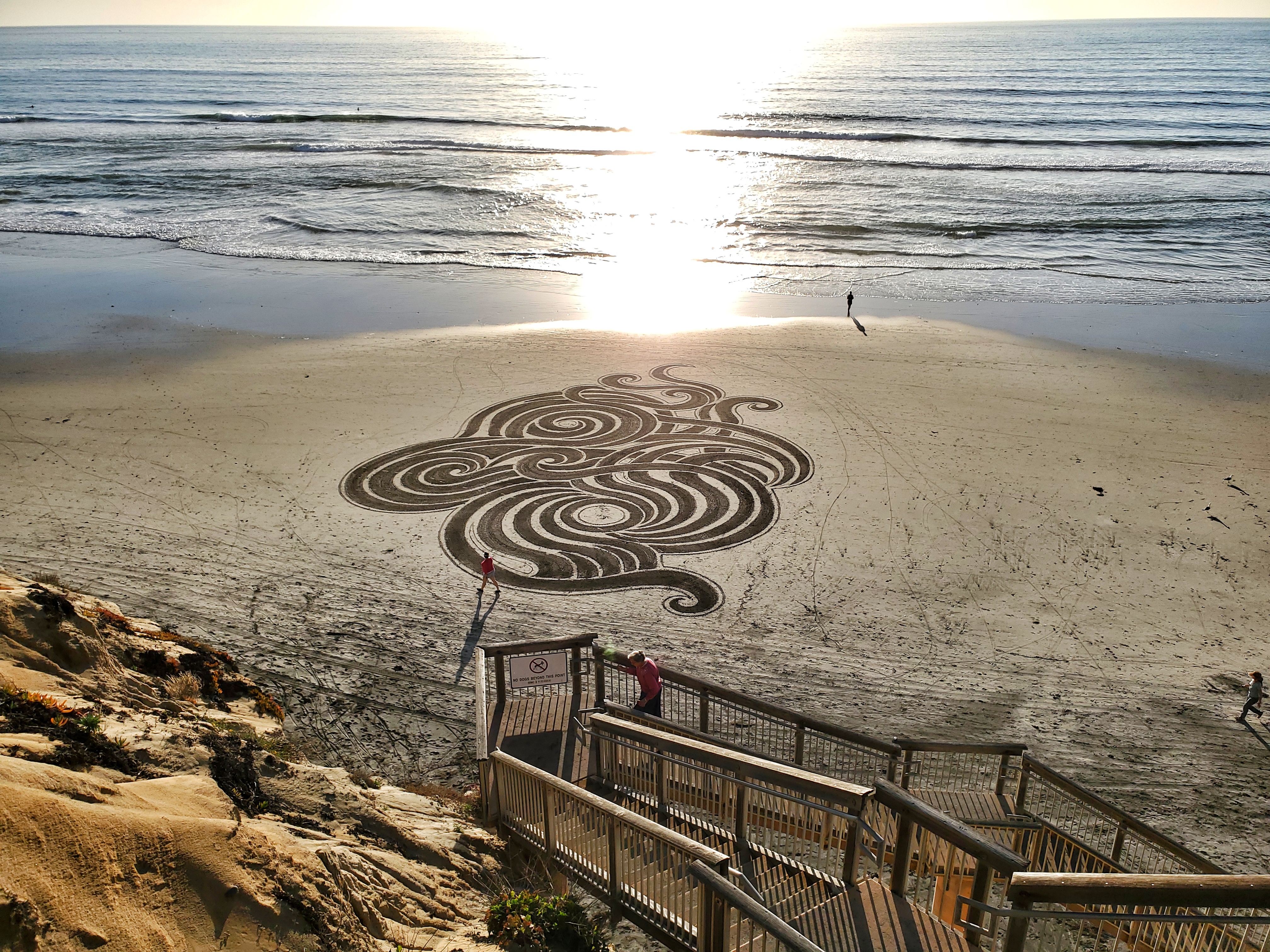 It's simple...scratch the smooth sand with a rake, step back, and you'll see the contrast between smooth (light color) and scored sand (dark color)
